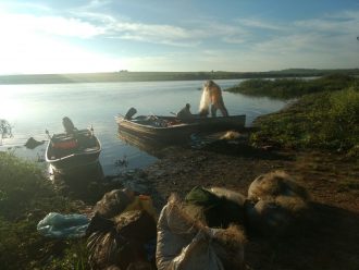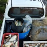 Ainda durante a vistoria foi constatado que próximo ao local havia outro pescador na mesma atividade, portanto 30 redes de nylon, com 35 metros cada, totalizando mais mil metros de redes, além de 62 quilos de pescado, sendo 6 de corvina, 26 de tilápia, espécies exóticas, seis de curimbatá, 11 de mandi e 13 de cascudos, espécies nativas.