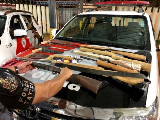 No local, as equipes de Força Tática constataram que o portão de uma das residências havia sido atingido por disparos e após buscas, foram encontradas 21 armas de fabricação artesanal.