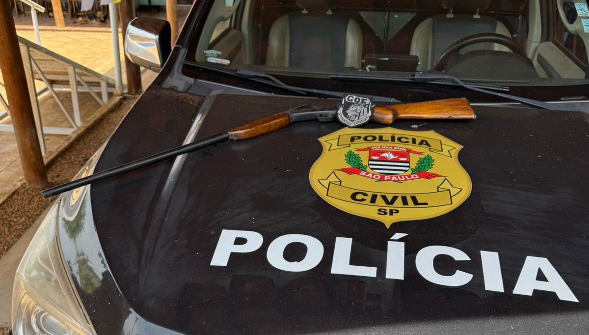 No local, os policiais encontraram uma espingarda Rossi, calibre .32, que possui características semelhantes à arma de fogo usada no homicídio. Diante disso, um homem, que se apresentou como proprietário do armamento, foi preso em flagrante por não possuir autorização para tê-la.