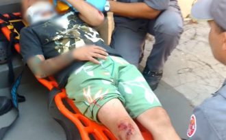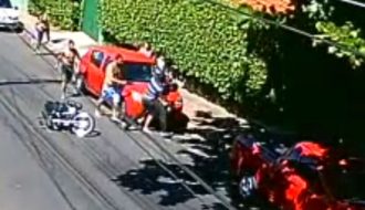 Descreve o boletim que ao montar na moto para ir embora, foi puxado pelo agressor, que o derrubou no chão, o pegou pelo pescoço, bateu sua cabeça contra o muro, desferiu socos e pontapés, o derrubando no chão novamente, com continuidade das agressões. Nesse momento, diz a vítima, que de uma residência próxima saíram mais dois elementos, que também ajudaram no espancamento.