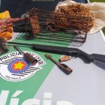 Em diligência a um sítio do infrator também foram localizados dois crânios de javalis, ainda com pelagem, com sinais de perfuração por arma de fogo e dois pernis, que serão encaminhados para a perícia na Unesp de Jaboticabal.