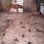 No local também foram localizados 5 cães em condição de maus tratos (sinais de desnutrição, debilitados, em ambiente infestado de ratos e com grande quantidade de fezes acumuladas), que prontamente receberam cuidados veterinários da Zoonoses de Pratânia e foram destinados temporariamente para outro tutor.