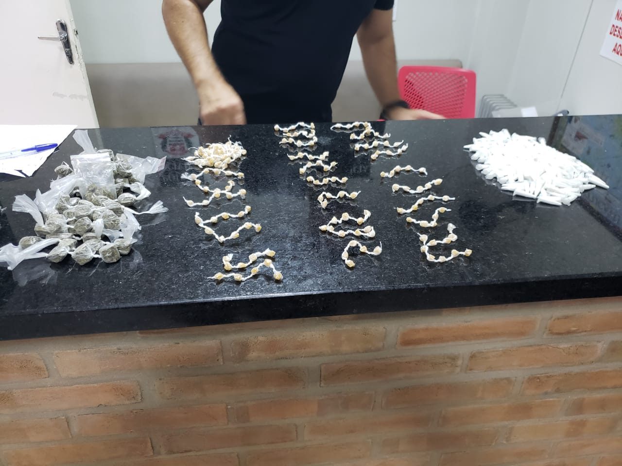 Na Polícia Civil foi ratificada a voz de prisão. A droga apreendida somou 174 porções de cocaína, 61 porções de maconha, 190 porções de crack, R$ 5.151,00 em dinheiro e um aparelho celular.