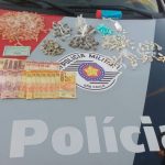 Foram conduzidos à Delegacia local Rafael Gomes Alves, 20 anos e Douglas de Almeida, 18 anos. Como resultado das apreensões, foram apreendidos R$ 480, 248 pinos vazios prontos para serem trabalhados, 73 pedras de crack, 1 porção de cocaína a granel, 109 porções de maconha e 21 pinos de cocaína.