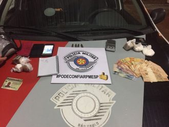 A droga localizada no veículo e a na residência continham embalagens semelhantes. Eles foram Conduzidos ao Plantão Policial. A mulher ouvida e liberada e o suposto vendedor preso em flagrante por tráfico de drogas, assim como o elemento que fugiu.