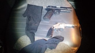 Ele abandonando dois objetos e anunciou a rendição. Os policiais constataram que eram um revólver calibre 22, municiado com 4 cartuchos intactos e um simulacro de pistola.