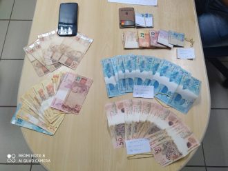 Dentro do veículo estavam dois ocupantes e realizando busca pessoal, nada de ilícito fora encontrado. Porém, com um indivíduo foi encontrado a quantia de R$450,00 em espécie em notas verdadeiras. Com o segundo indivíduo a quantia de R$91,00 em espécie, também em notas verdadeiras e dentro do veículo um envelope contendo R$420,00 em espécie em notas verdadeiras.