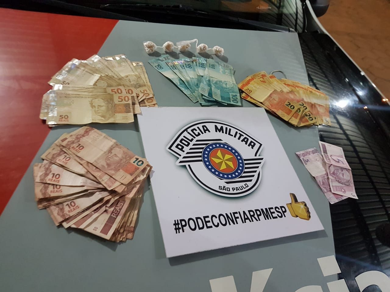 O Boletim de ocorrência diz que quando viu a viatura, o suspeito dispensou uma sacola plástica. Relata ainda o B.O, que realizada a abordagem, foi encontrado por um homem a quantia de R$ 3.840,00 e na sacola dispensada 60 porções de crack.