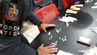 Com a vistoria no local, foi localizado sob um lavatório de cabelo, um saco transparente contendo 22 malotes, com 20 pinos de cocaína em cada um. No total era 440 pinos, pesando aproximadamente 0,259 kg.