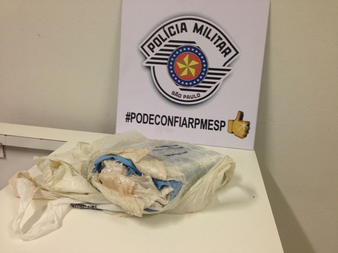 Ele foi abordado e em vistoria pessoal, nada localizado. Porém, no veículo foi achado um tijolo de cocaína no porta malas, debaixo do pneu reserva, e junto um aparelho celular com o qual funcionava o disk-droga.