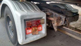 Na manhã desta sexta-feira, dia 07, um caminhão Mercedes Benz, do município de Boituva, atravessou a praça de pedágio da Rodovia Castelo Branco, em Itatinga, sem efetuar o pagamento da tarifa. O motorista utilizou a cancela de pagamento automático sem ter o equipamento cadastrado para uso deste benefício. Além disso, o condutor ainda adulterou as placas do veículo para impossibilitar a identificação do mesmo.