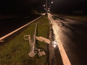 A equipe do Acontece Botucatu esteve na noite deste domingo, dia 21, na Rodovia Domingos Sartori, que liga Botucatu a Rubião Júnior, e constatou que um radar de velocidade e uma placa de sinalização de trânsito estavam caídos, no canteiro central da rodovia.