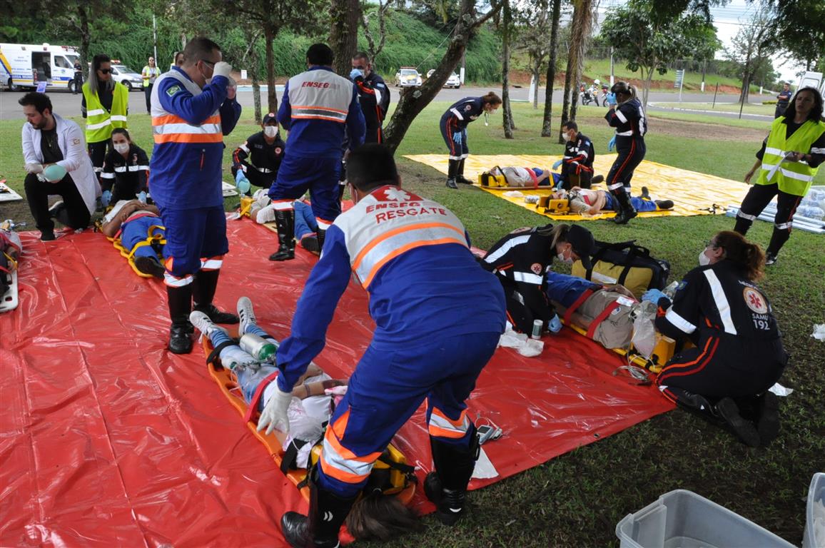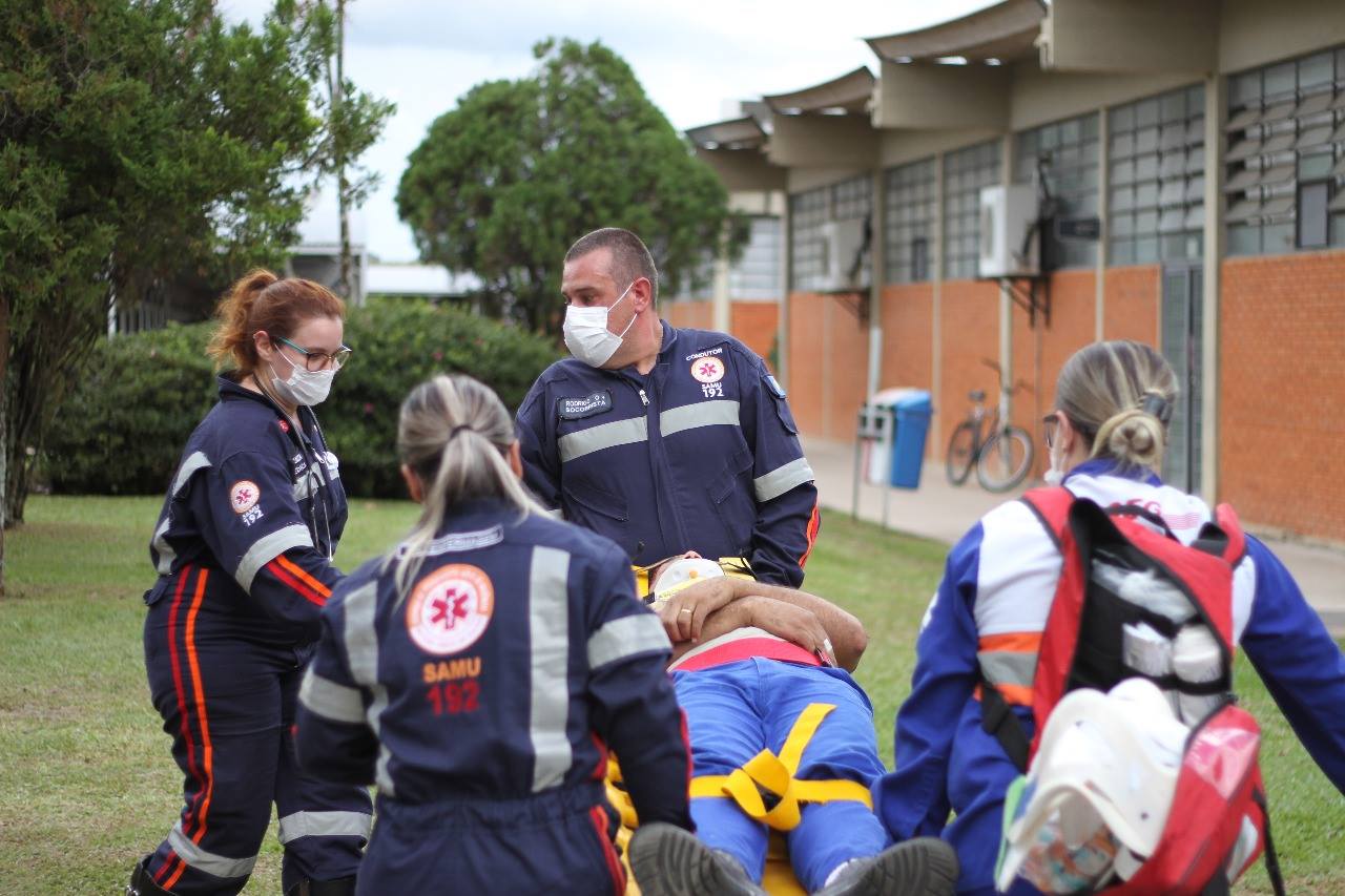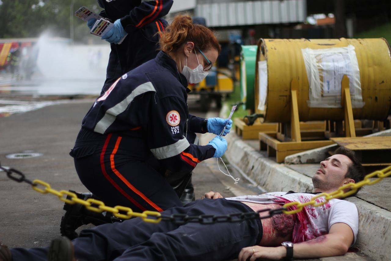 Pelo menos uma vez por ano, o SAMU192 realiza um simulado em empresas da Cidade, a fim de treinar a equipe para acidentes de grandes proporções.