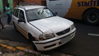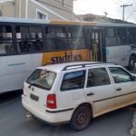 Sem conseguir segurar o coletivo, o motorista atingiu, de ré, um veículo VW Parati, de cor branca, que seguia atrás do ônibus. A Parati, por sua vez, colidiu contra um Fiat Uno, que também seguia