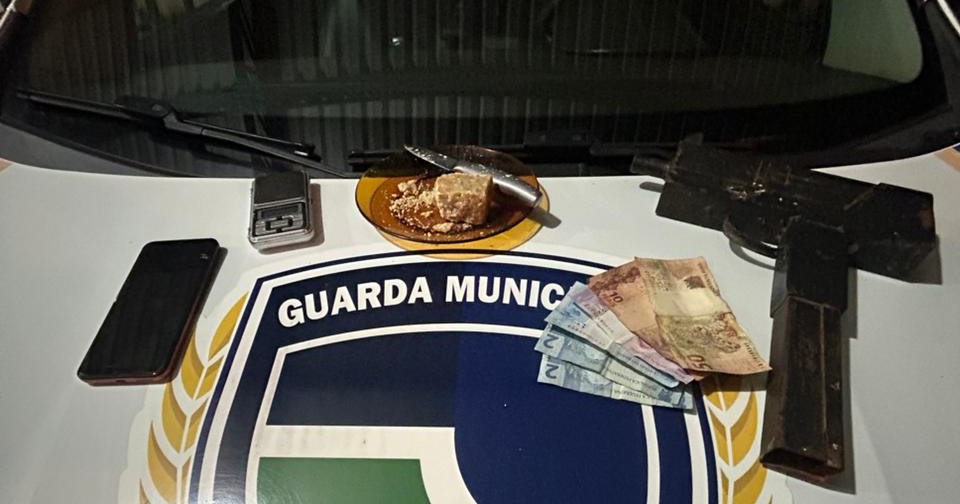 A equipe deu ordem de parada e o homem se deitou no chão. Durante a abordagem, foram apreendidos cerca de 40 gramas de substância análoga ao crack, um simulacro de arma de ferro, dinheiro e uma balança de precisão.