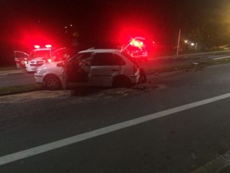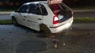 Quando o condutor já estava na rua Stélio Machado Loureiro e retornou à Vital Brasil, colidiu contra um GM Prisma, que trafegava regularmente pela avenida. Com o impacto, a roda traseira do carro em fuga se soltou e mesmo assim, o condutor não parou, o que aconteceu só depois que ele colidiu contra o canteiro central da avenida, próximo ao terminal rodoviário.