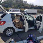 Neste sábado, dia 21, durante fiscalização de combate a ilícitos penais, a equipe do TOR – Tático Ostensivo Rodoviário de Tatuí abordou o veículo Renault/Sandero na cor branca com placas do município de Três Lagoas, Mato Grosso do Sul.