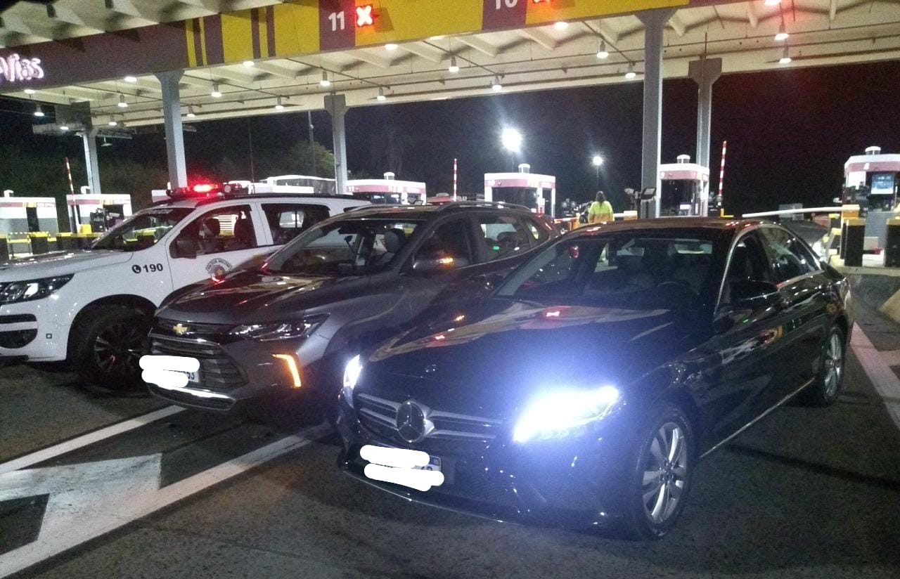 Durante fiscalização pela praça de pedágio de Itatinga, Rodovia Castelo Branco, na madrugada desta quinta-feira, dia 03, a Equipe do Tático Ostensivo Rodoviário observou que dois veículos que pareciam transitar em comboio. Ao chegarem juntos no pedágio, os veículos foram abordados.