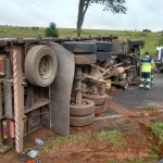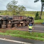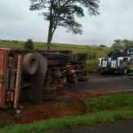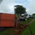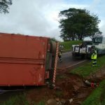 TV Acontece: Caminhão carregado com caixas plásticas tomba e interrompe tráfego na Rondon: Cabo Milanesi/Polícia Rodoviária.