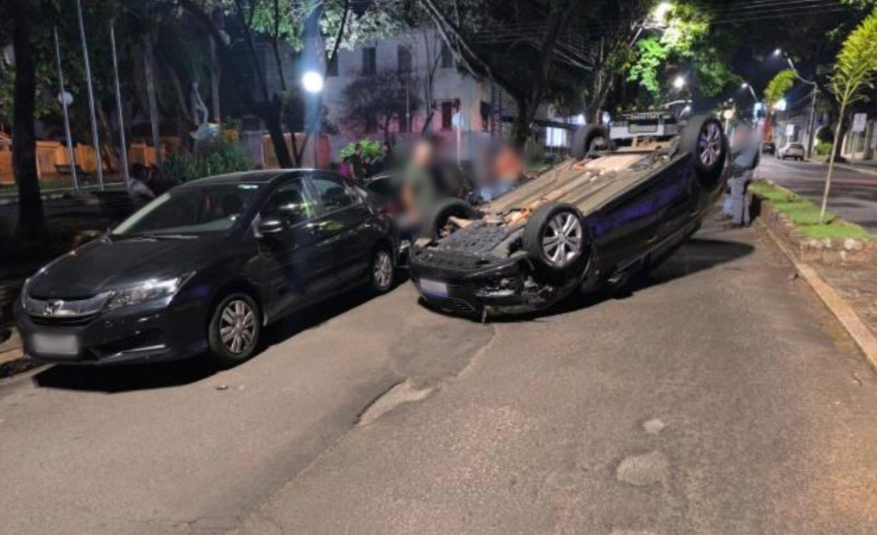 De acordo com informações da Polícia Militar, o motorista trafegava pela Rua Sete de Setembro e, ao acessar a Avenida Santana, perdeu o controle da direção. Para evitar subir no canteiro central, ele desviou o volante, mas acabou colidindo na traseira de dois carros que estavam estacionados — um Voyage e um Honda City. Com o impacto, o automóvel capotou.