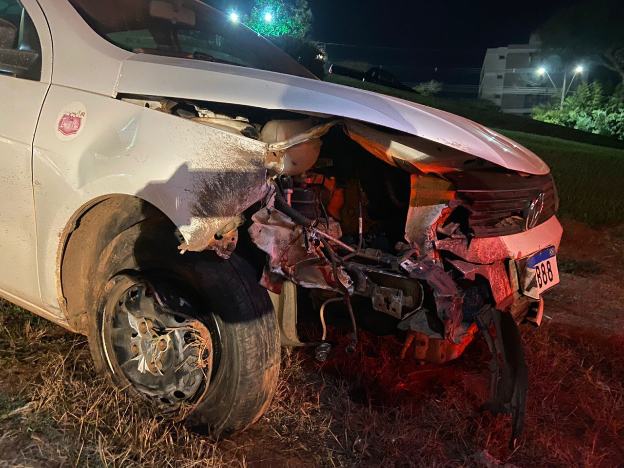 O veículo teve a frente destruída. Apesar do susto, ninguém ficou ferido.