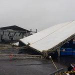 A forte chuva que atingiu Botucatu na tarde deste domingo, 28, danificou parte da estrutura do Motoshow, evento que está sendo realizado no Aeroporto Municipal Tancredo Neves. As primeiras informações dão conta de que parte da estrutura de cobertura cedeu em sua base com o forte vento.