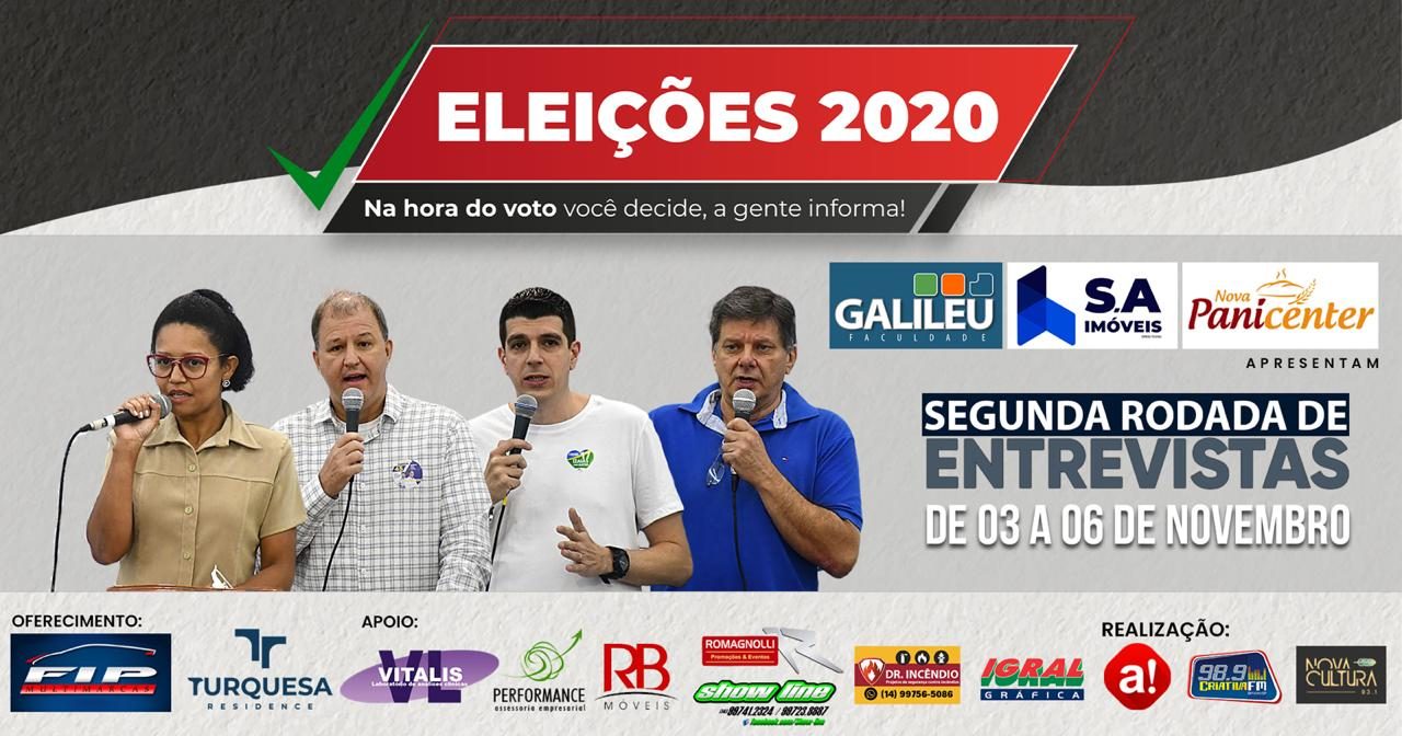 Lembrando que na primeira rodada de entrevistas, de 19 a 23 de outubro, os temas foram Saúde, Educação, Segurança, Políticas de Inclusão, Geração de emprego e renda.