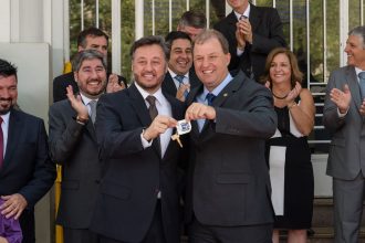 Já empossado, Pardini citou em seu discurso na Prefeitura a crise, pediu união e agradeceu mais uma vez o ex-Prefeito João Cury Neto. “Quero agradecer primeiramente a Deus, a minha mãe, minha filha Bruna. Quero pedir a vocês que estejamos firmes, fortes, resolutos para enfrentarmos essa crise que tanto nos atinge. João, você vai deixar saudade. Você me entrega um governo enxuto, justo e honesto. Agradeço a população de Botucatu que em mim confiou, me carregou no colo, que me colocou aqui hoje. Estar aqui foi um milagre de Deus e eu valorizo muito isso. Conto com cada um de vocês”, colocou Pardini.