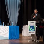 O discurso do novo prefeito era o momento mais aguardado. Com a voz embargada, agradeceu a Deus e em especial sua família, mãe e filha. Também lembrou do ex-Prefeito João Cury, que estava na plateia, chamando-o de grande incentivador.