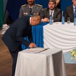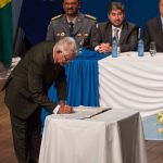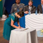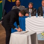 Em seguida o Prefeito de Botucatu seguiu para o Paço Municipal Luiz Aparecido da Silveira (Lico Silveira), em frente ao prédio da Prefeitura, onde assinou o livro de posse e recebeu de João Cury o cargo de Prefeito de Botucatu.