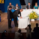 Formal e emotiva. Assim foi marcada a cerimônia de posse do novo Prefeito de Botucatu, Mário Pardini, seu vice, André Peres e os 11 vereadores eleitos em outubro de 2016. O evento ocorreu na manhã deste domingo, dia 01, no Teatro Municipal Camillo Fernandez Dinucci.