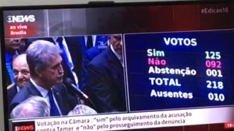 Às 20h20m os deputados da base do governo Temer já tinham alcançado o número necessário para o arquivamento das denúncias.