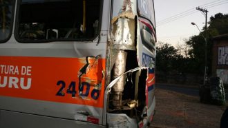 Um acidente envolveu um trem, uma van escolar e em um ônibus do transporte coletivo na manhã desta segunda-feira (26), em Bauru (SP). A batida ocorreu em uma passagem de nível localizada na rua São Sebastião, na Vila Falcão.