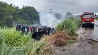 Um caminhão carregado com leite capotou e pegou fogo nesta segunda-feira (8) pela rodovia Raposo Tavares (SP-280), em Itaí (SP). De acordo com a Polícia Militar Rodoviária, o motorista perdeu o controle da direção no quilômetro 271 e capotou pela pista. Em seguida, o veículo começou a pegar fogo.