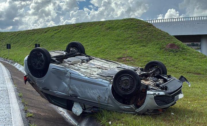 Um carro capotou na tarde deste sábado (04) na Rodovia SP-280 (Castello Branco), no trecho que passa pelo município de Pardinho.