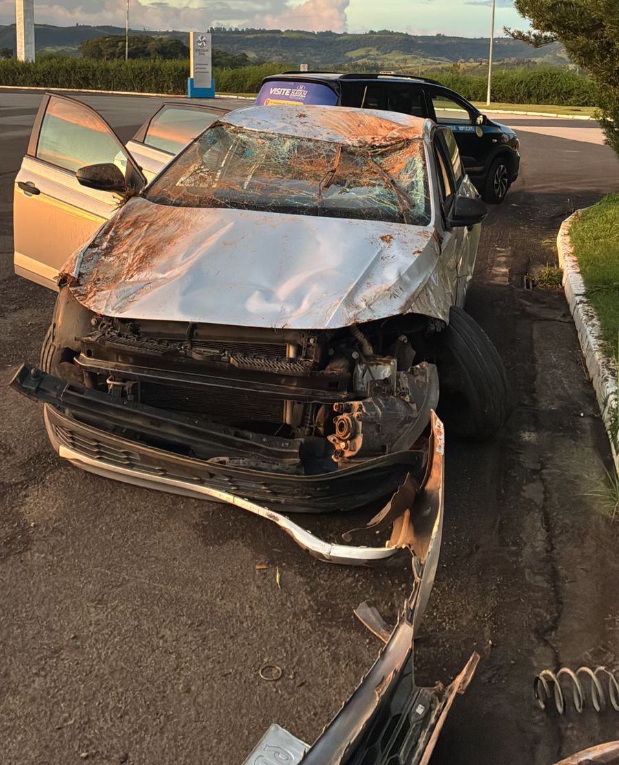 Segundo apurado pelo Acontece Botucatu, o veículo, um VW Polo, aquaplanou na pista. Sem controle, o condutor colidiu contra a defensa metálica e, na sequência, o carro capotou.