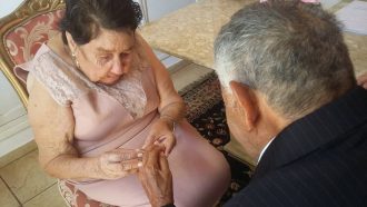 O casal Laurentino de 89 anos, e Antônia de 71 anos, oficializaram a união nesta segunda-feira (30) os dois se conheceram no asilo, Pousada Da Colina em São Manuel. Em frente ao juiz Adilson Blanco, os dois confirmam a vontade de oficializar a união.