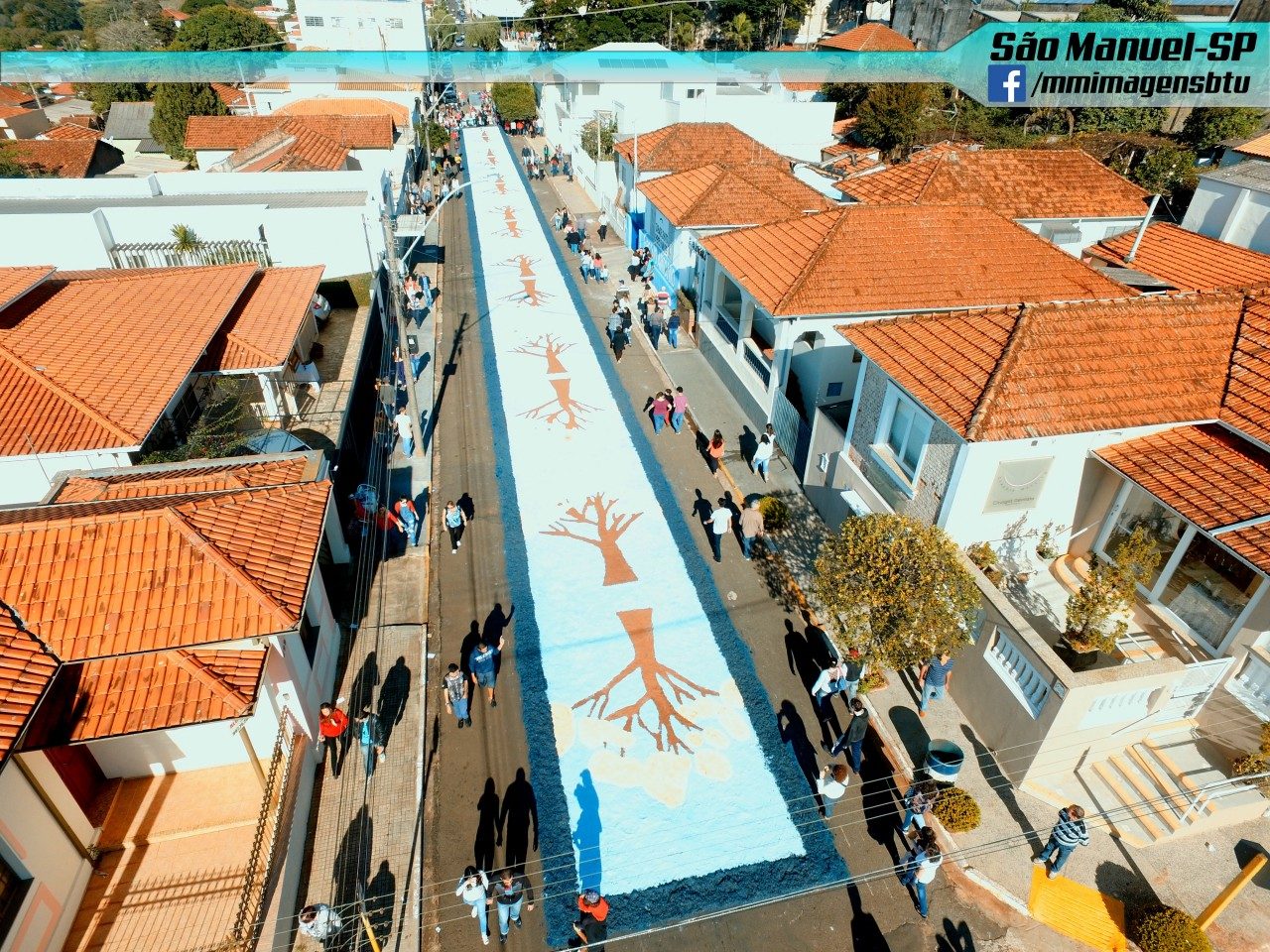 Em São Manuel a tradição decorativa é marcante. Com o tema “Biomas Brasileiros e Defesa da vida”, milhares de pessoas visitaram a cidade para acompanhar as celebrações.