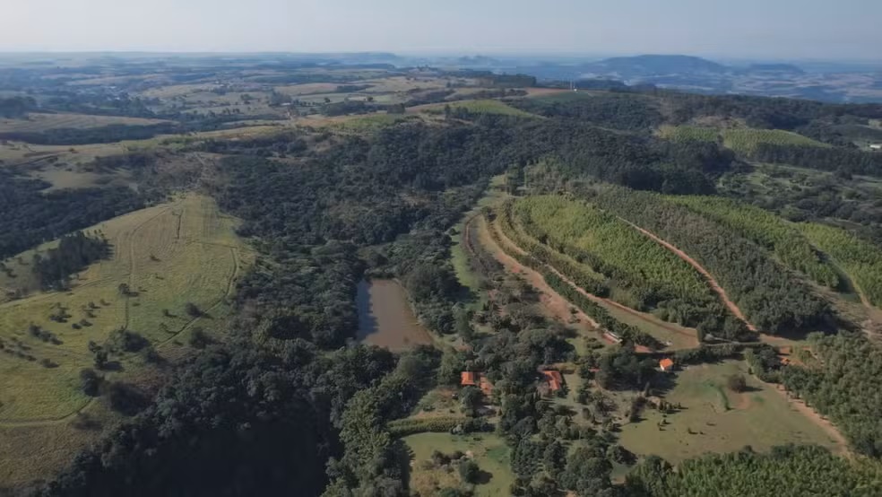 De cima, é possível ver o resultado da transformação. São mais de 200 hectares com árvores nativas, nascentes recuperadas e extensos bambuzais que formam hoje um verdadeiro mosaico verde. Mas nem sempre foi assim.