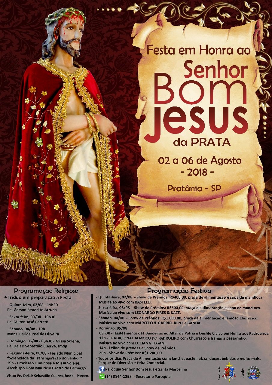 A Paróquia Senhor Bom Jesus e Santa Marcelina de Pratânia vai organizar no mês de agosto sua grande Festa em Honra ao Padroeiro de Pratânia. O evento será de 02 a 06 de agosto, com Missas, Procissão, deliciosa praça de alimentação, atrações musicais, parque de diversão, feira comercial e show de prêmios.