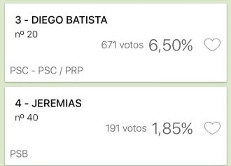 A chapa liderada pelo ex-presidente da Câmara teve 5.706 votos, com 55, 29% do total. João Bosco foi o único candidato da eleição de outubro que disputou novamente o pleito.