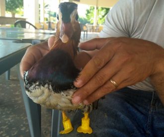 Depois do resgate, os funcionários acionaram uma veterinária para fazer os primeiros socorros. “Fui até o local e fiz os curativos. Então, liguei para um grande amigo meu, que é protético, e pedi para que ele me ajudasse com uma prótese para que o patinho conseguisse voltar a andar”, relata Wilma Pinatti.