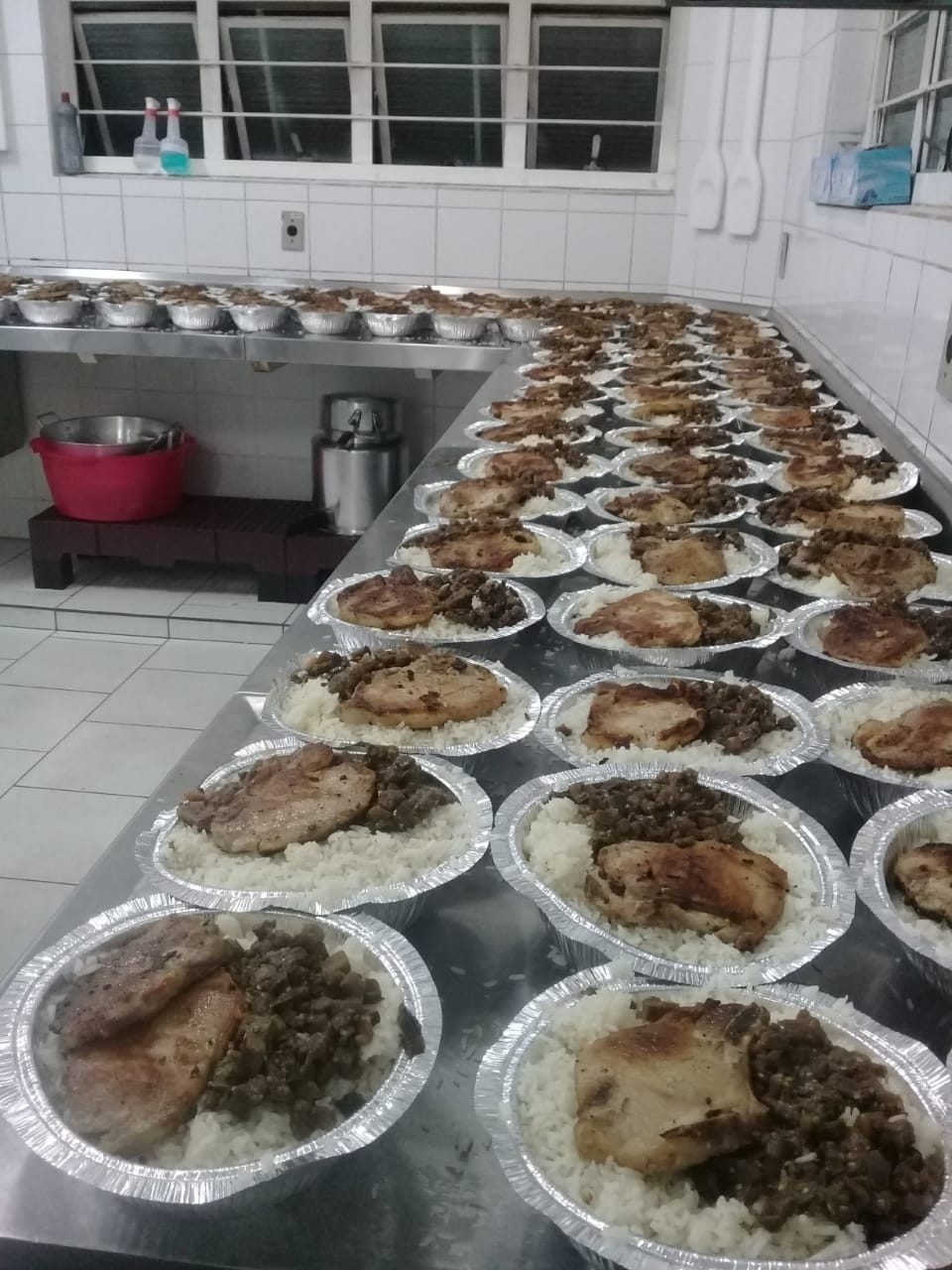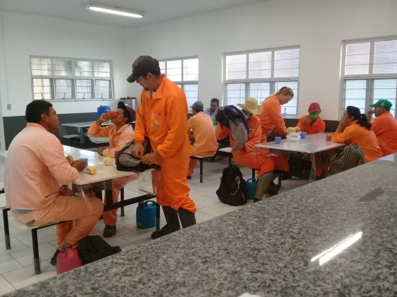 Os trabalhadores comparecerem na Cozinha Comunitária para tomar café e também retirar a marmitex do almoço antes da longa jornada de trabalho. Quem trabalha no horário noturno, retira a marmitex para a janta.