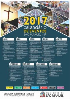 Após reuniões com representantes de entidades e organizações que realizam ações sociais e festejos anualmente, a Diretoria de Esportes e Turismo e a Diretoria de Promoção Social do Município de São Manuel, que faz parte do Polo Turístico da Cuesta, cadastraram 145 eventos, entre os meses de abril e dezembro de 2017.