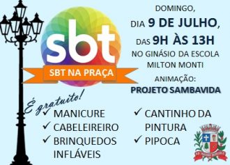 O evento SBT na Praça tem entrada franca e disponibilizará gratuitamente: cortes de cabelo, manicure, brinquedos infláveis, pipoca e animação com o Projeto Sambavida. O Ginásio da EMEF Milton Monti está localizado na Rua José Gerzelli, 290.