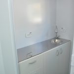 O trailer ainda possui um banheiro, para uso da equipe de profissionais que atuará no local, com um vaso sanitário e uma pia. A Unidade também está equipada com sistema ecológico de utilização de água, onde a mesma utilizada para a lavagem das mãos será reutilizada na descarga. O equipamento possui também dois aparelhos de ar condicionado.