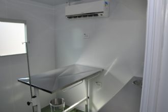 Com formato idêntico a um trailer, a Unidade Móvel possui quatro janelas, acabamento termoacústico, com três salas internas: uma pré-operatória, uma sala cirúrgica e uma pós-operatória. Essa última, com capacidade para acomodação de até oito animais.