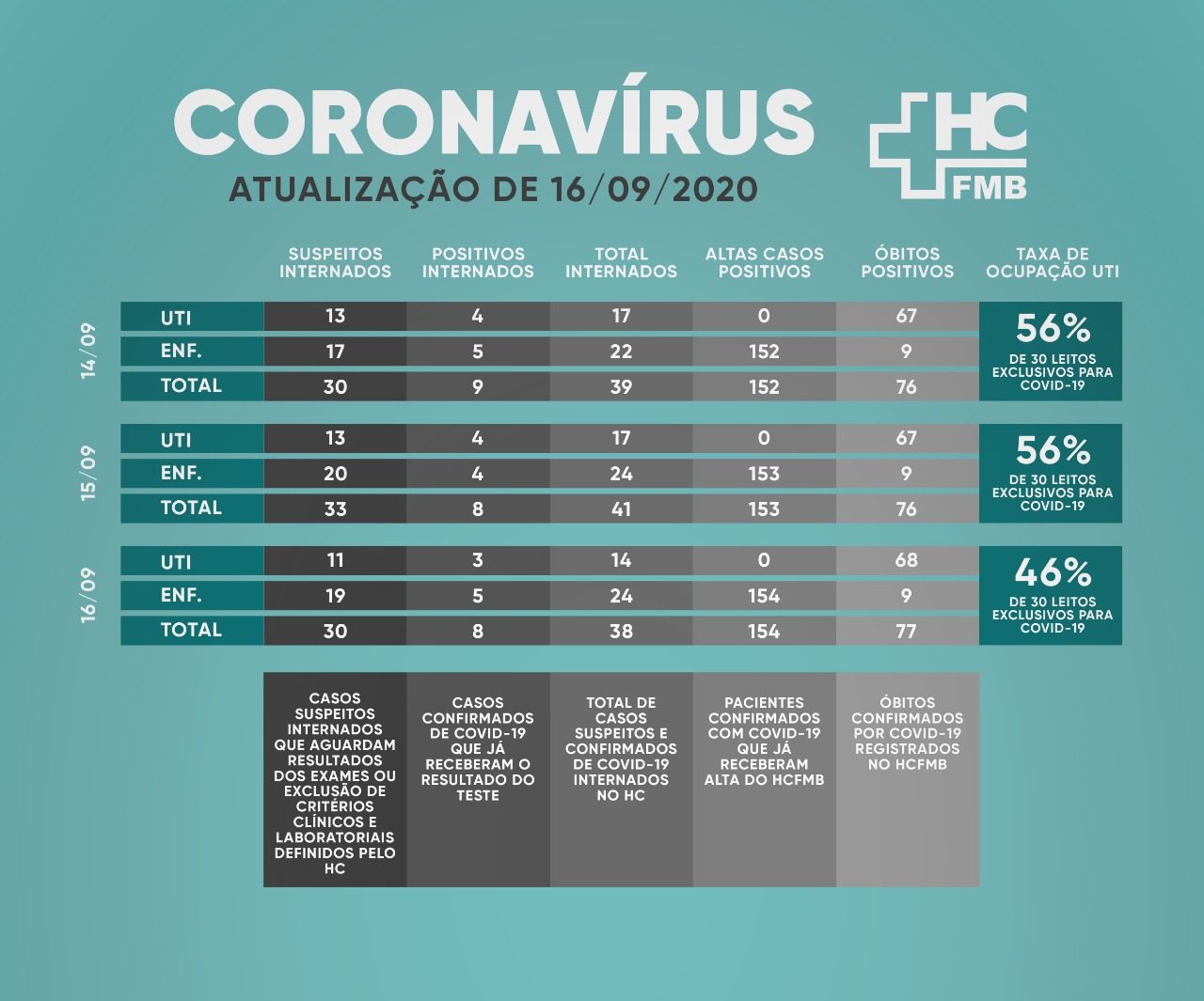 O Hospital das Clínicas da Faculdade de Medicina de Botucatu (HCFMB) atualizou nesta quarta-feira, dia 16, suas principais informações sobre o coronavírus.