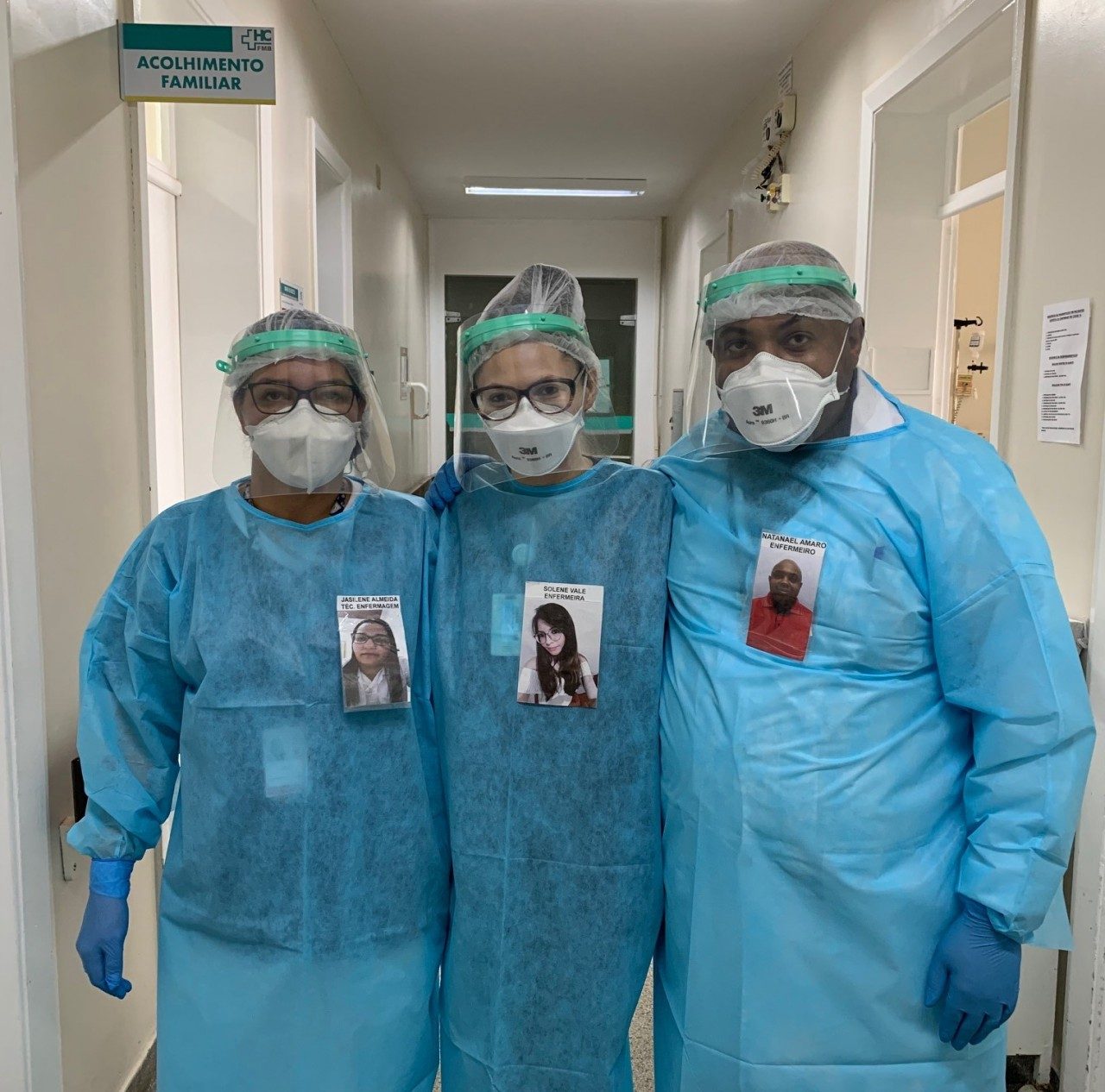 E por trás das máscaras, dos acessórios e das muitas camadas de roupas que compõem os EPIs obrigatórios destes profissionais, existem seres humanos. E justamente por isso, a equipe da Enfermaria COVID do Hospital das Clínicas da Faculdade de Medicina de Botucatu (HCFMB) adotou uma medida aparentemente simples, mas que mudou e humanizou o atendimento a estes pacientes: passaram a usar uma foto pessoal grande presa ao uniforme de trabalho, que contém também o nome e a função do profissional.