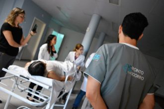 A primeira atividade da programação foi o Simulado Angel, destinado exclusivamente a profissionais que atuam na Unidade de AVC do Hospital. Médicos residentes da equipe se dividiram e, um grupo por vez, atenderam a uma paciente fictícia com sintomas de AVC. A intenção era aprimorar os procedimentos, inclusive, com a análise de exames de imagem.